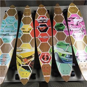The History of Mustang Longboard Collection is a Ford Dealer sales incentive program sponsored by the Ford Custom Accessories Vehicle Personalization department. The incentive features a set of five exclusive longboards, each customized with un